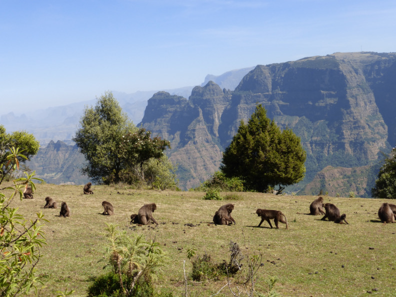 Embark on a guided safari from Debark, Ethiopia, staying at nearby limalimo lodge. You may also see these baboons while on one of the multi-day treks available in the Simien Mountains National Park.